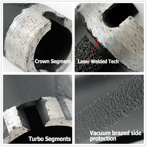 - If the segment become blunt, please try to sharp it by drilling a hole on the abrasive concrete and then continue to drill the hard material.